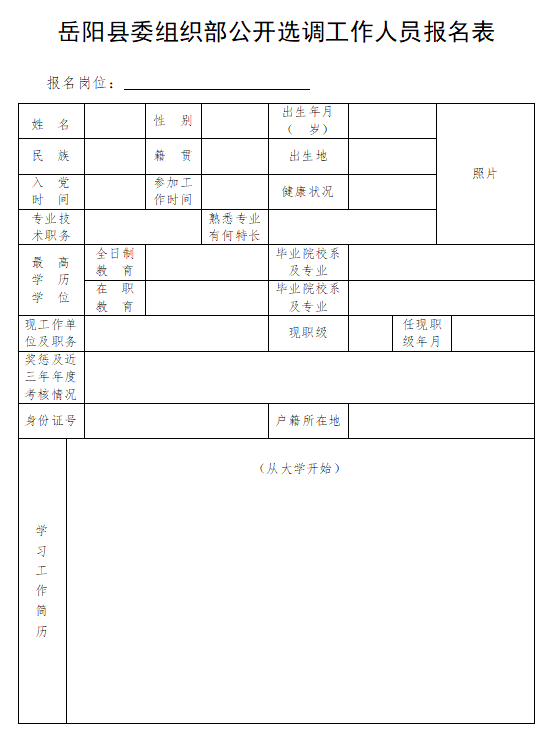 根据工作需要,经岳阳县委同意,岳阳县委组织部面向全市公开选调工作人员,现公告如下: