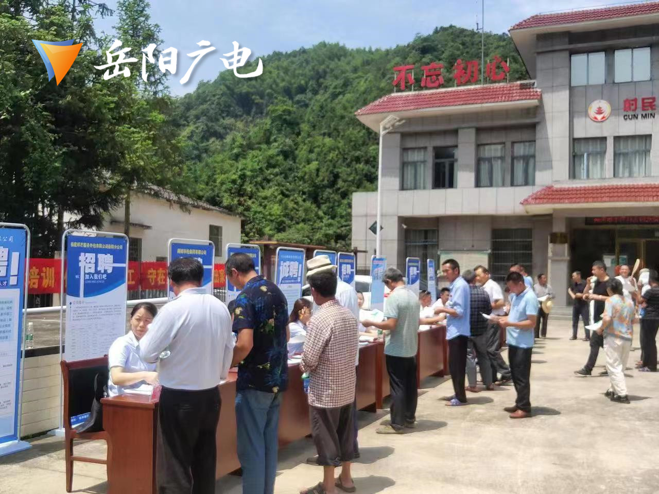 6月8日,一场别开生面的招聘会在平江县大洲乡清水村举行,吸引附近4个乡镇1000多名群众进场求职,现场初步达成就业意向110多人。