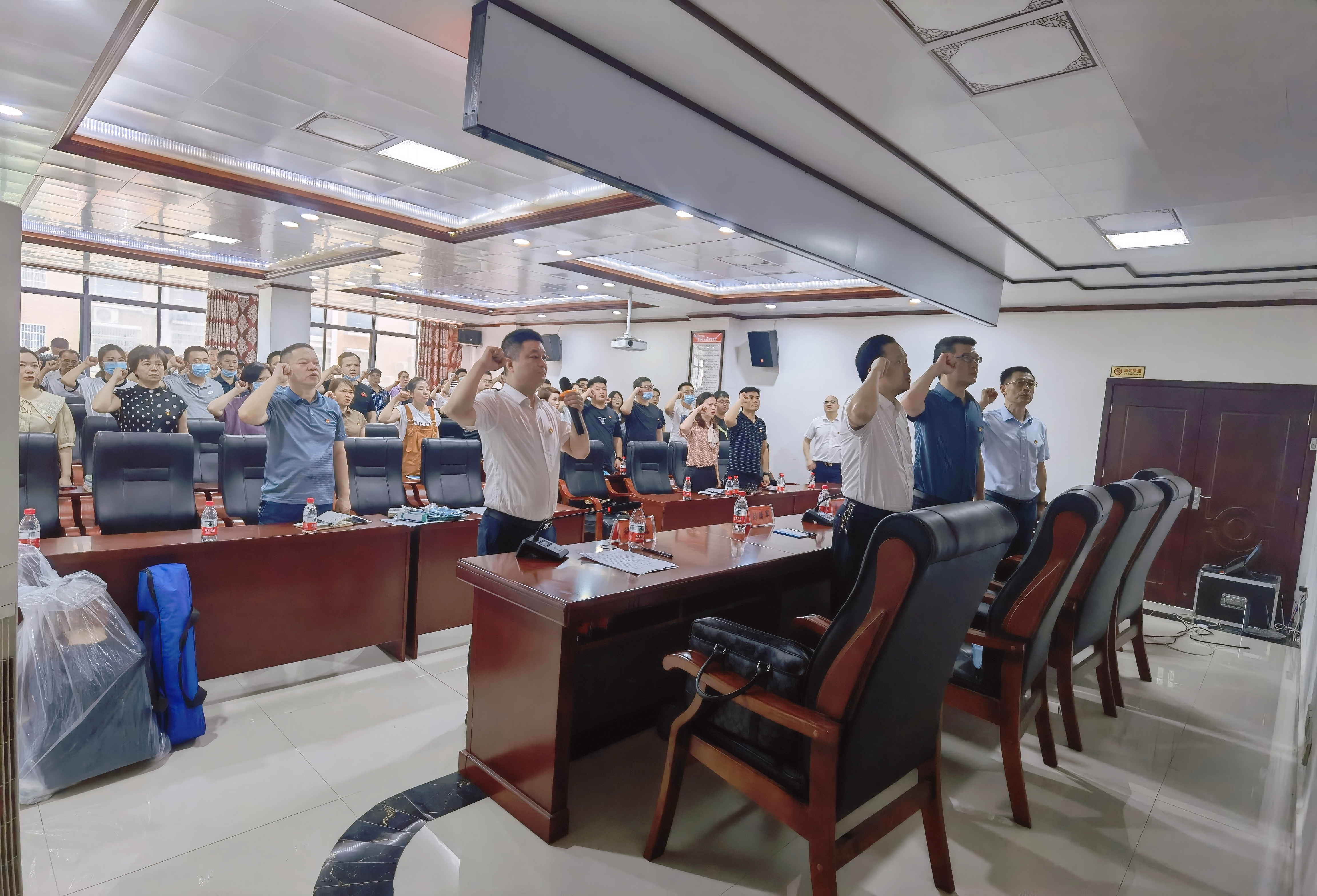 6月22日,华容县委办党总支、人民医院行政党支部与田家湖生态新区马鞍社区党总支联合开展“两结对、三互比、一联创”主题党日活动,重温入党誓词。