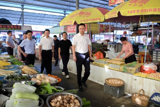 岳阳广电全媒体讯(岳阳楼区融媒体中心 任可)8月15日下午,岳阳楼区委副书记、区长白再兴深入部分农贸市场调研,查看市场环境卫生整治情况,督导深化全国文明城市建设工作。岳阳楼区领导李熊及相关部门单位、属地街道负责人等参加。
