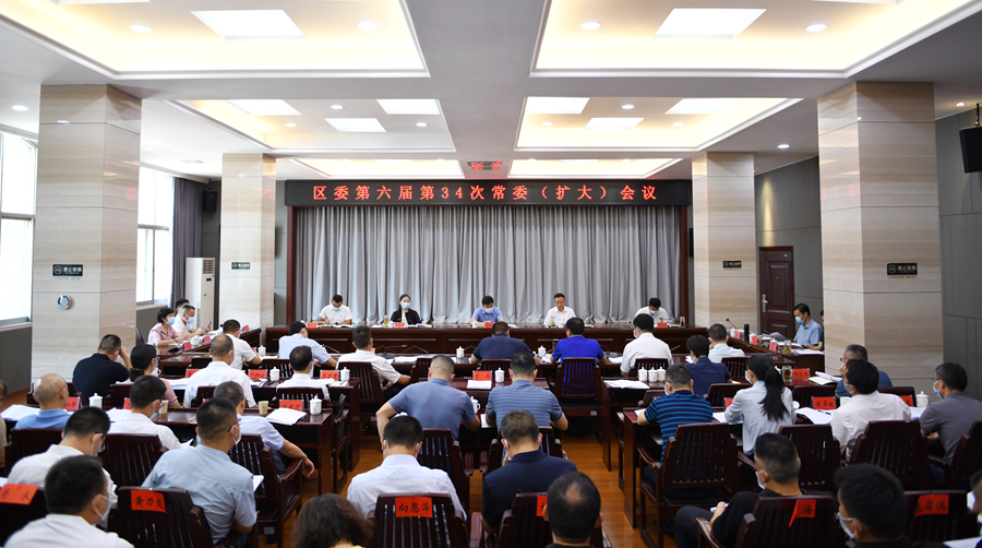 岳阳广电全媒体讯(岳阳楼区融媒体中心 胡小康 袁梓杰)8月17日上午,岳阳楼区委书记曾平原主持召开区委第六届第34次常委(扩大)会议,学习习近平总书记近期重要讲话精神,学习《关于贯彻落实<中国共产党机要密码工作条例>的若干措施》,听取省运会筹备、深化全国文明城市建设、疫情防控等工作情况汇报,研究相关方案并部署当前工作。区委副书记、区长白再兴及全体在家的区委常委会议组成人员参加。