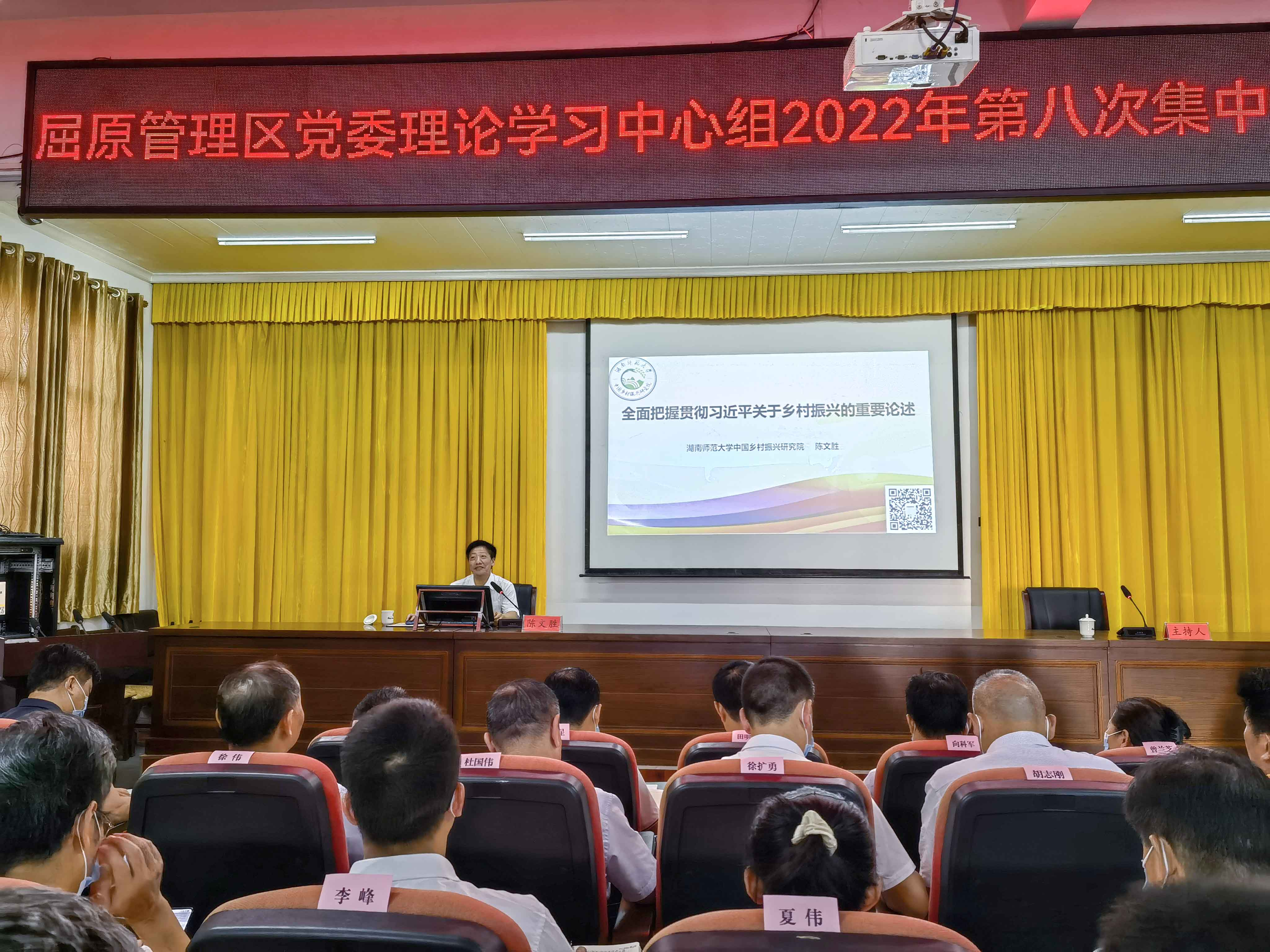 8月18日上午,屈原管理区特邀湖南师范大学中国乡村振兴研究院院长、教授陈文胜,岳阳市农业农村局高级农艺师陈绍祥,为全区党政负责干部和相关企业及农业合作社负责人讲解乡村振兴政策,把脉屈原农业产业发展。