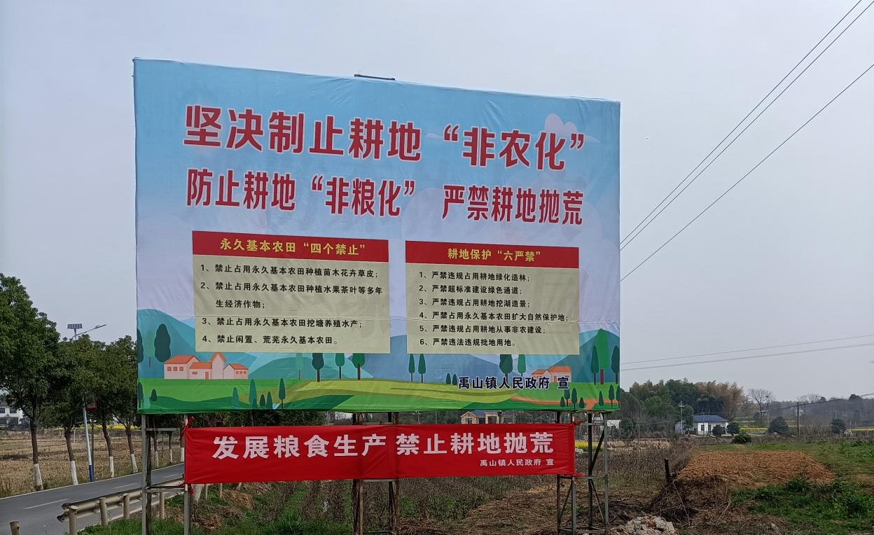 岳阳广电全媒体3月10日讯(记者/余小满 通讯员/刘文浩)为严格落实耕地保护责任,制止耕地“非农化”“非粮化”,华容县禹山镇党委、政府推行“源头严防、过程严管、后果严惩”的耕地保护举措,部署开展乱占耕地违法行为整治行动,牢牢守住耕地红线。