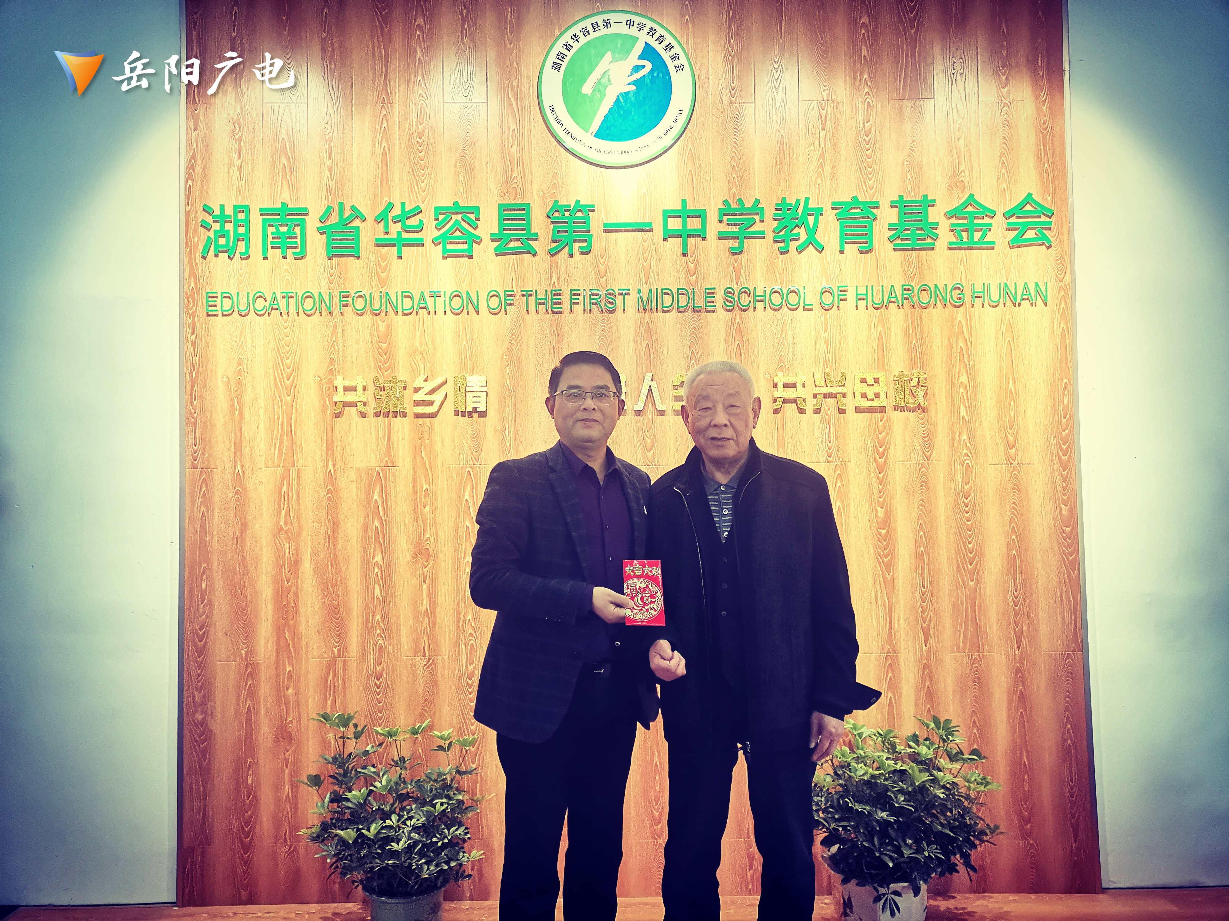 年过九旬的汪荣甲先生1956年10月进入华容一中从教,1980年12月在华容一中校长的岗位上调往岳阳师范任职,他把自己的青春韶华献给了他热爱的三尺讲台,他热爱的华容一中。“留得人间真情在,江山不老水长流。”抚今思昔,汪荣甲先生说,他离开华容一中42年了,仍然魂牵梦绕着这片钟灵毓秀的土地。这次重访华容一中,有一种回家的感觉。在华容一中教育基金会举行的简短的欢迎仪式上,汪荣甲向华容一中图书馆捐赠了54册由张烈培编写的《汪荣甲传略》,并向华容一中教育基金会捐款2000元。