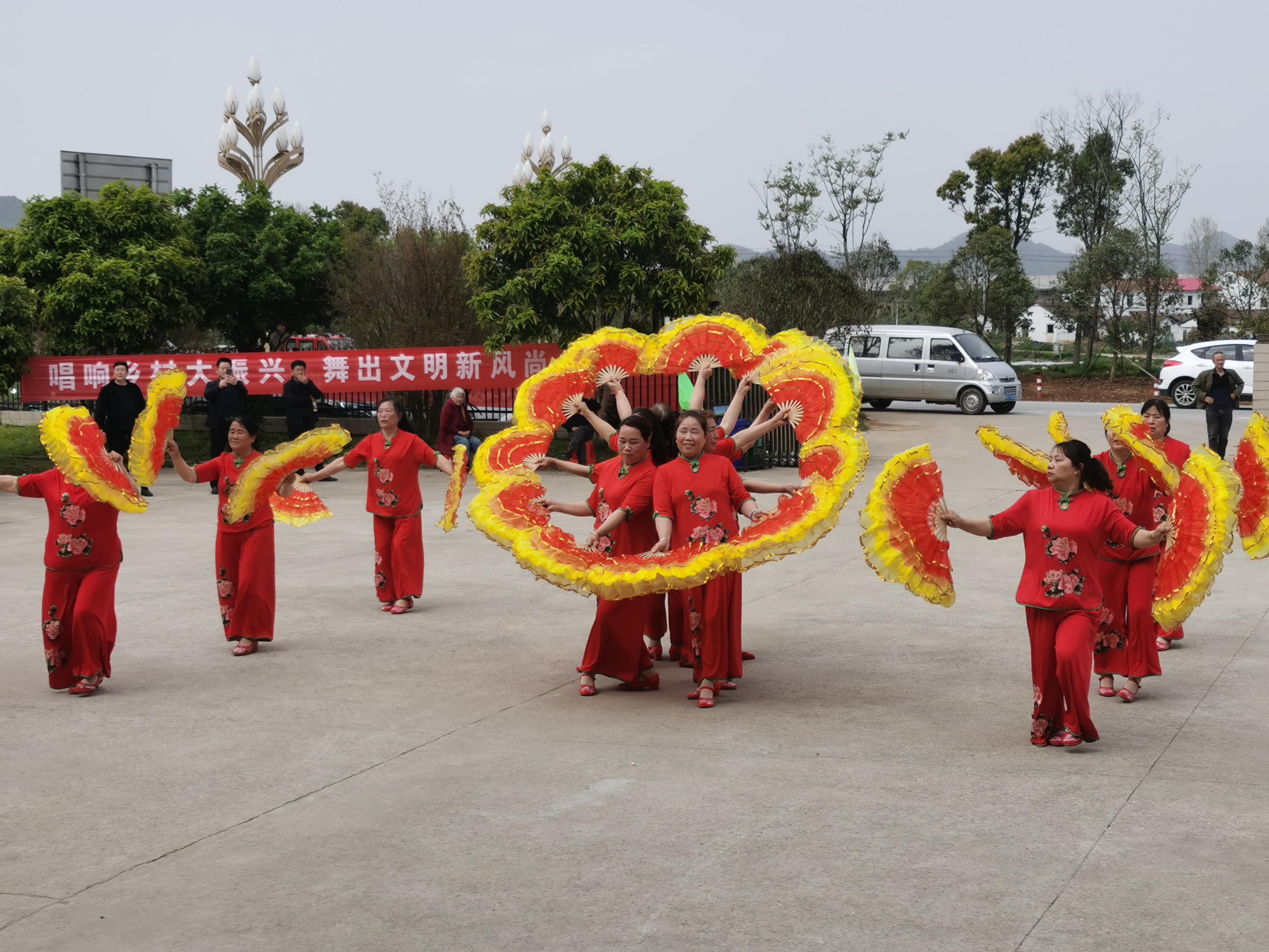 参加比赛的有10个屋场的10支代表队,参赛的《张灯结彩》、《母亲是中华》、《火辣辣的中国》等节目突出时代感,积极向上,凝心聚力。每支队伍都身着盛装,激情四射,摇曳生姿,呈现从一片欢乐的海洋。经过两个小时的激烈而又友好的竞争《吉祥中国年》获得一等奖、《映山红》和《红红火火中国年》获得二等奖。