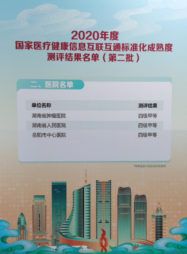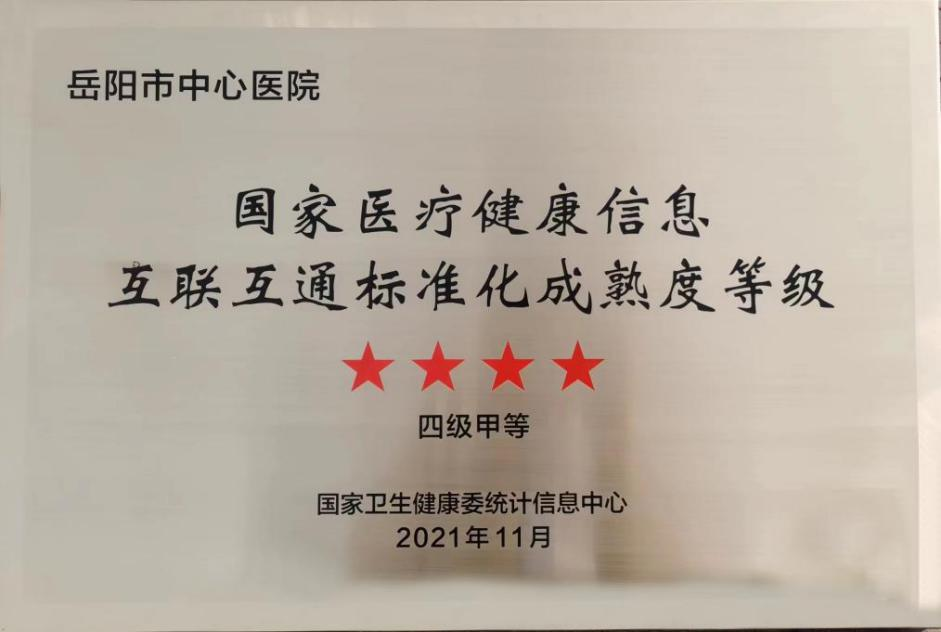 4月15日,第十七届中国卫生信息技术/健康医疗大数据应用交流大会在安徽合肥召开。国家卫健委统计信息中心公布了2021-2022年度国家医疗健康信息互联互通标准化成熟度测评结果,岳阳市中心医院成功荣获“互联互通四级甲等”授牌,标志着医院信息化建设水平迈上新的台阶。