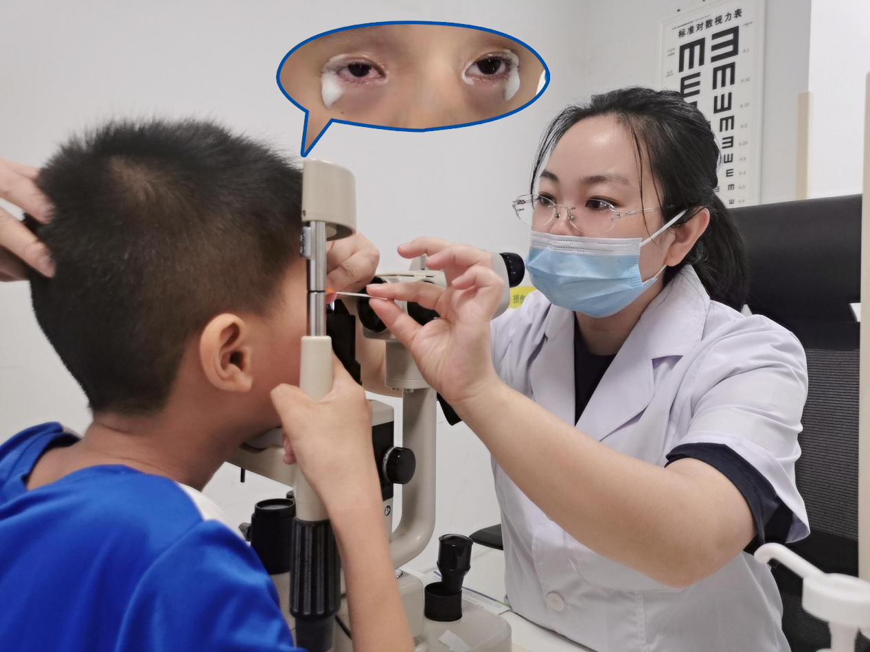 “最近这段时间孩子的眼睛一直红红的,平时看书学习都会觉得好难受,一直揉眼睛。这两天眼周还出现了白色的泡沫,不知道眼睛是怎么了?好害怕……”鑫鑫妈妈担忧地向医生介绍孩子的近况,鑫鑫也因为眼睛不舒服,透露着不安的情绪。
