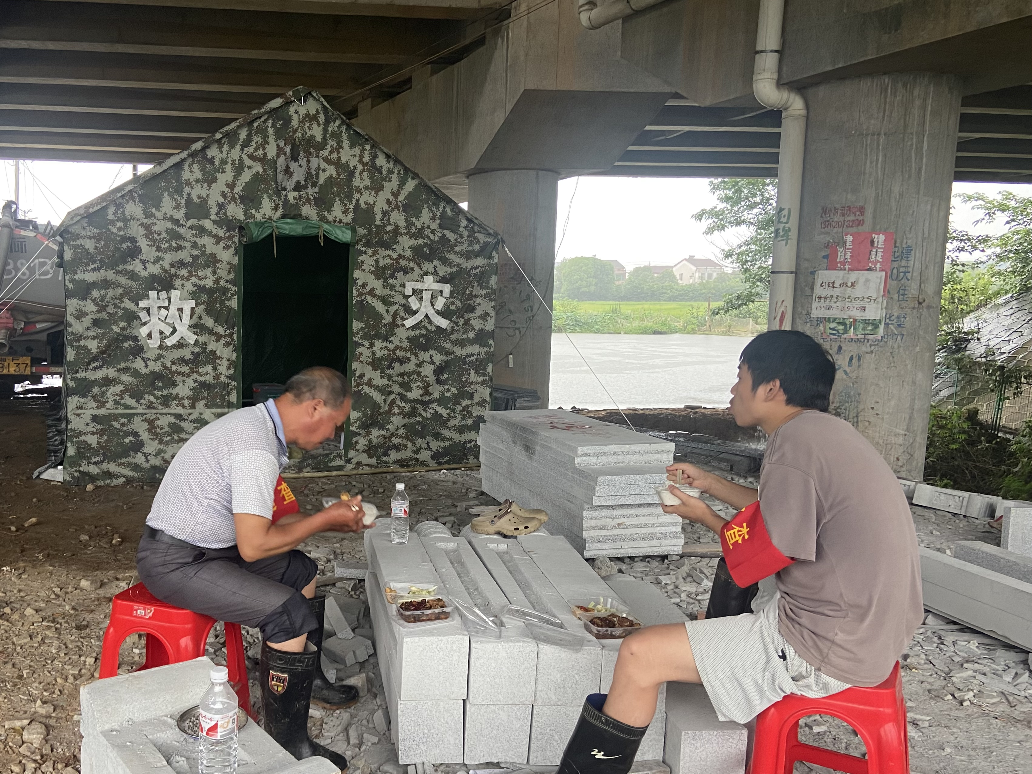 岳阳广电全媒体7月2日讯(通讯员/周佩)“现在这个阶段查险找险是重中之重,绝对马虎不得。越是下大雨,巡堤就越是要仔细”倾盆大雨中,刚刚完成一轮巡查任务的退休老党员徐德和与一名年轻防汛队员在值班处旁边的石墩上一边吃晚饭一边聊天。
