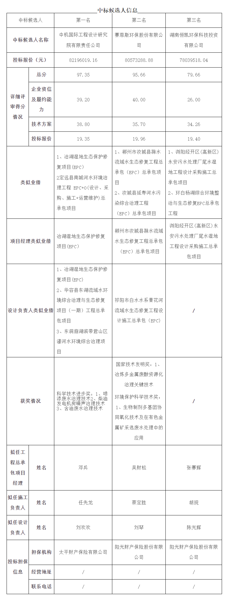 根据招标投标相关法律法规及招标文件的规定,岳阳市罗家坡污水处理厂(二期)尾水湿地净化工程工程总承包项目于2024年8月19日(北京时间)在岳阳市共资源交易中心完成开评标工作,本项目评标办法采用综合评估法,评标委员会推荐了以下3名中标候选人(排序),现将相关信息予以公示,公示期三个工作日。