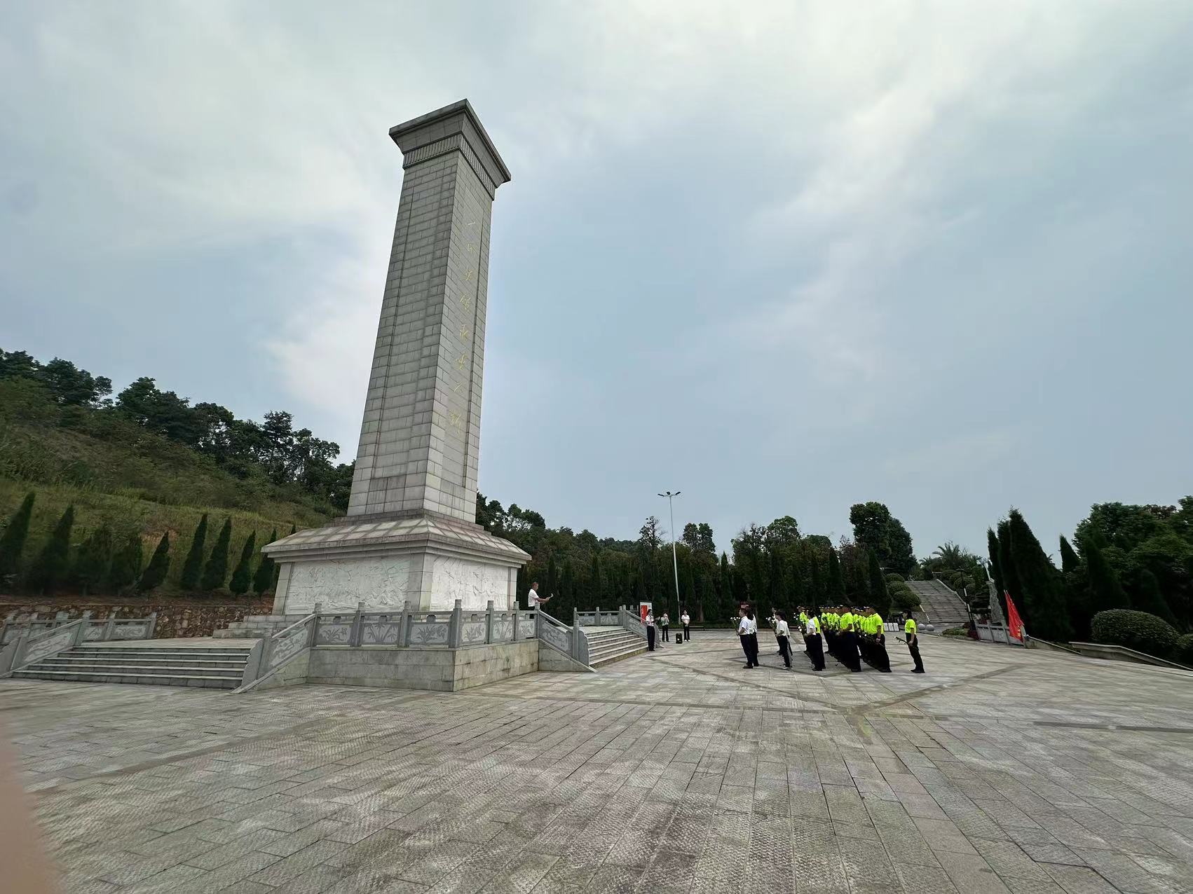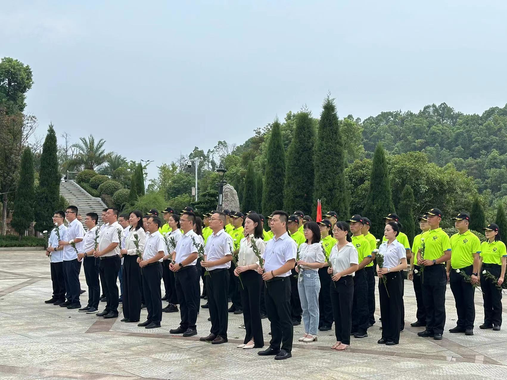 下午三时,在岳阳市烈士陵园的烈士纪念碑前,来自岳阳市委宣传部的20余名机关干部身着庄重正装,胸前佩戴熠熠生辉的党徽,整齐而立。与此同时,市巴陵先锋退役军人志愿服务队的30余名退伍老兵身着笔挺制服,精神抖擞地站成整齐队列。庄严的《中华人民共和国国歌》奏响,激昂的旋律在陵园上空回荡,每个人的心中都涌起强烈的爱国之情。