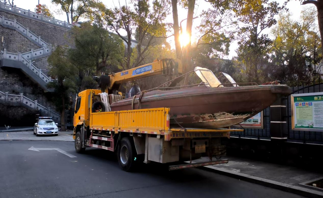 当日晚上7时50分许,联合执法人员在岳阳北门渡口至城陵矶桂花园水域巡查时,发现一艘快艇在中石化趸船上游50米处航行,一辆车牌号为湘FA310X随车吊停在中石化码头岸边。经执法人员调查核实取证,该艇涉嫌“三无船舶”,湘FA310X随车吊准备将该快艇吊装上岸。执法人员将涉事船舶、车辆集中暂扣,涉事人员也正在配合调查之中。