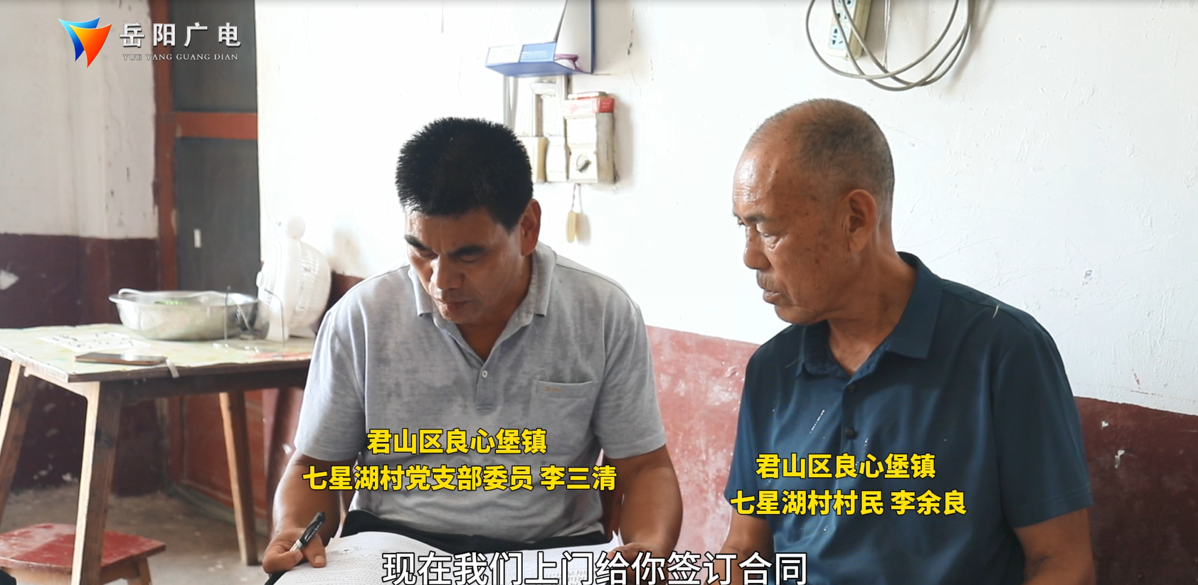 君山区良心堡镇七星湖村党支部委员 李三清:李哥,现在我们上门给你签订合同,按时缴纳经营费用,不能私自流转(土地)。