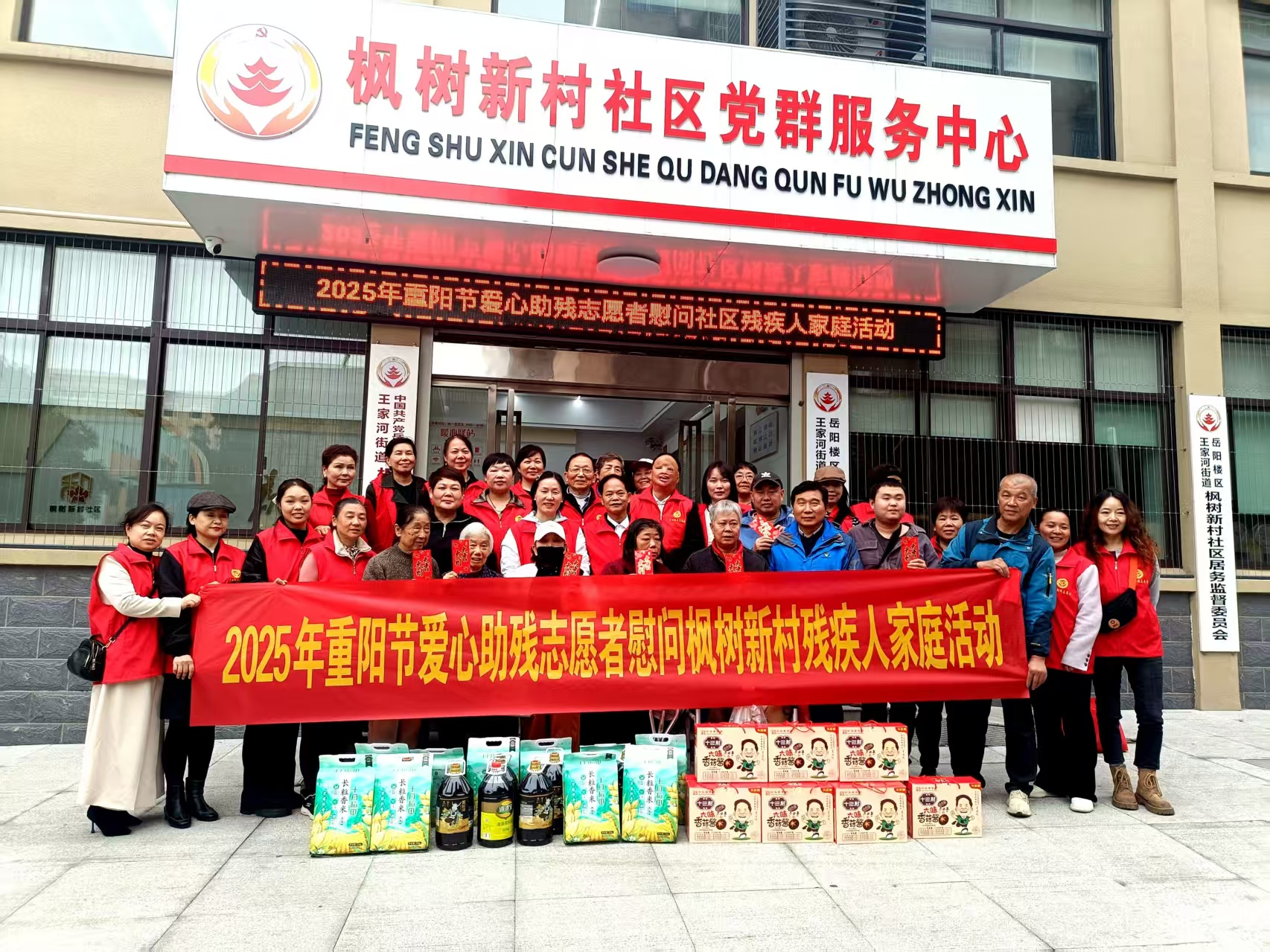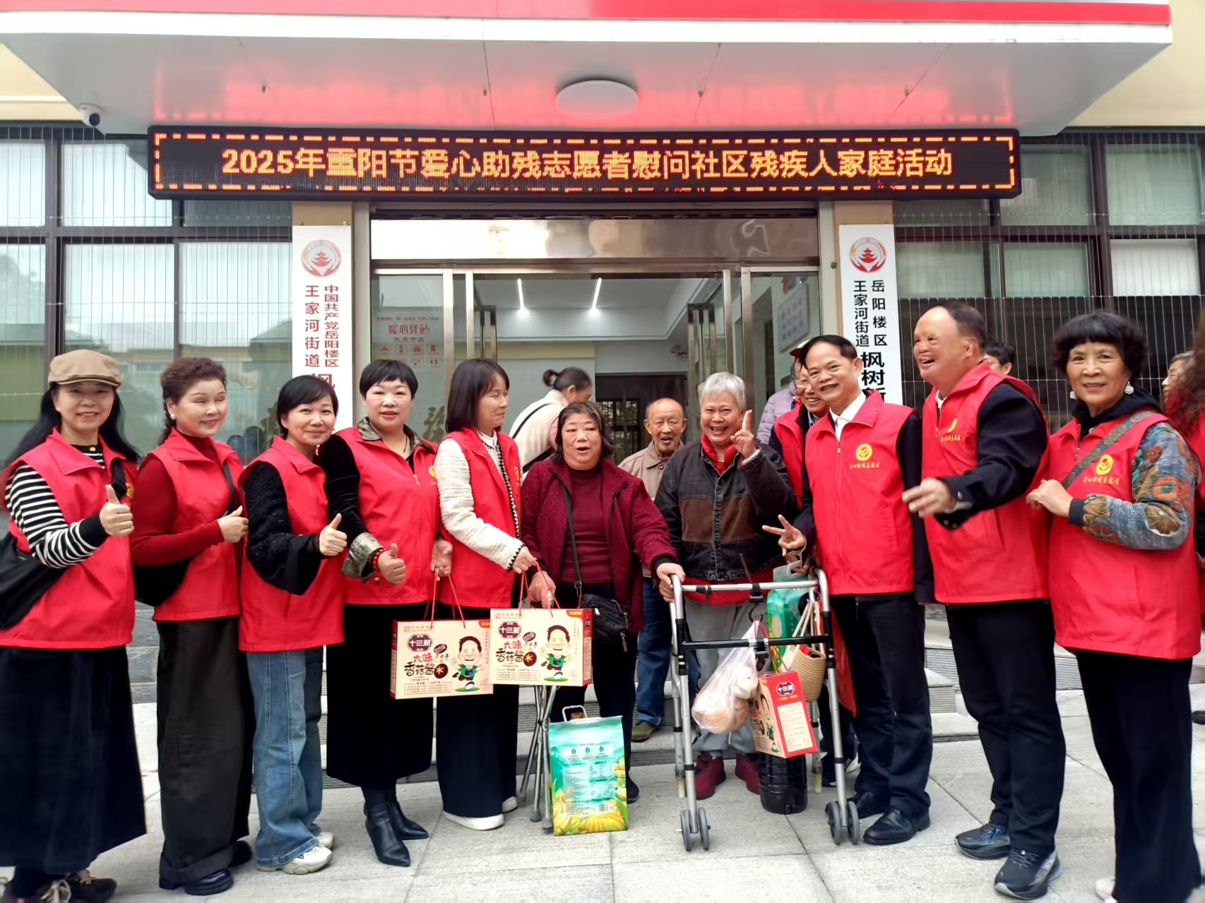 岳阳广电全媒体讯(通讯员 王睿思、陈燕)步步登高社区好,年年重阳胜春朝。10月27日下午,岳阳市岳阳楼区枫树新村社区里好不热闹,“2025年重阳节爱心助残志愿者慰问枫树新村残疾人家庭活动”浓情举行,助残志愿者们分别为10户困难残疾老人及其家人送上了沉甸甸的“节日礼物”,祝愿他们过一个温暖祥和的重阳佳节。岳阳市爱心助残志愿者协会87岁的党支部书记岳卓群开心地说:“特殊的节日需要特殊的关爱。一年一度的重阳节,我们一定不能忘了这些比较困难的残疾老人,让他们感受到全国文明城市的温度与幸福感,是一个老党员、老志愿者的职责所在!”会前,全国道德模范、岳阳市志愿服务联合会会长李国武主持召开了岳阳市爱心助残志愿者协会党支部和理事会学习贯彻党的二十届四中全会精神会议,岳阳市爱心助残志愿者协会岳卓群书记和范海梅会长传达学习了党的二十届四中全会精神,号召党员和志愿者骨干们立即行动起来,迅速为落实会议精神做好相关工作。