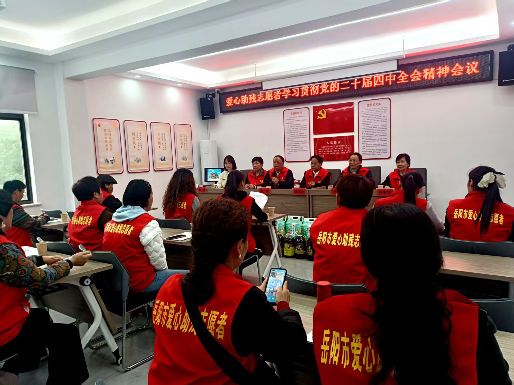 看到枫树新村社区党支部书记邓莉和受助残疾人及其亲属情不自禁对志愿者孙学文、刘美满、罗素华、邱瑞兰、周红、张文芳、汤琴琴等纷纷竖起大拇指、赞不绝口,李国武会长慷慨激昂地对大家说:“我们要乘着党的二十届四中全会胜利召开的东风,以实际行动努力提升基层群众的获得感、幸福感、安全感,这是每一个志愿者的神圣使命。我市爱心助残志愿者制度化、常态化、个性化持续深入开展‘把爱送进家志愿服务活动’,这是‘四季同行,雷锋家乡学雷锋志愿服务行动’的‘升级版’,值得推广并延伸,让‘邻里守望’志愿服务活动真正贴近社区群众的心,真正落实落细并取得实效,这才是‘我奉献,我快乐’志愿者最大的光荣与自豪!”