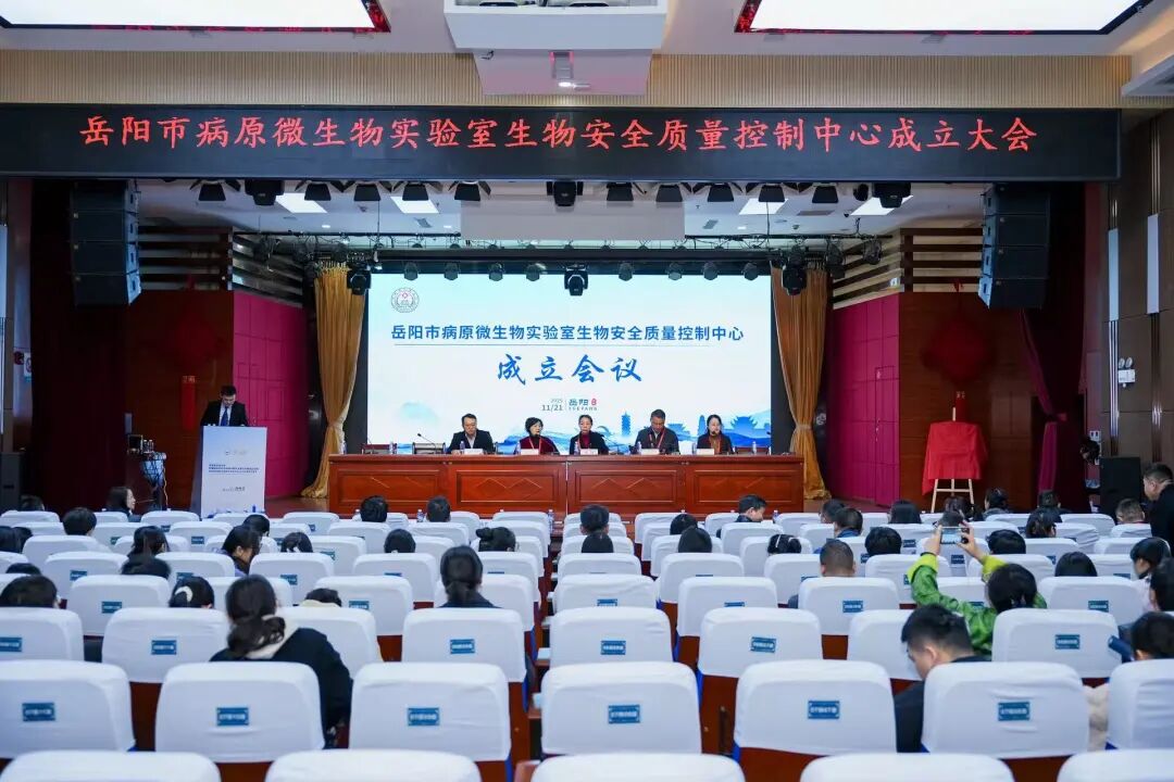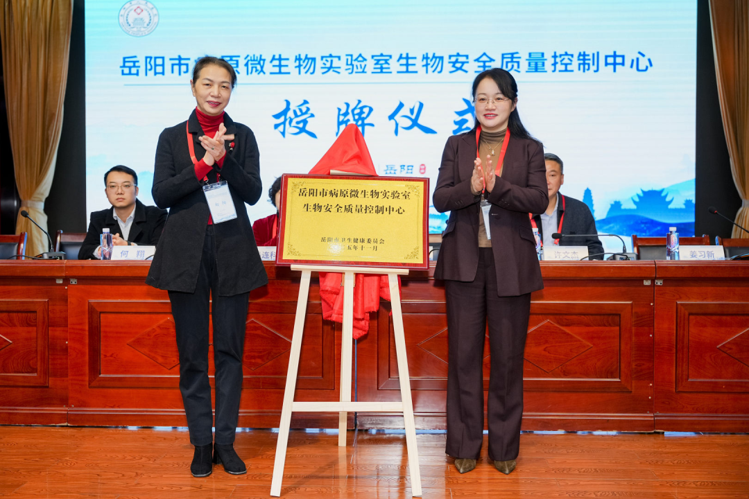 2025年11月21至22日,岳阳市医学会检验专业委员会学术年会及岳阳市病原微生物实验室生物安全质量控制中心成立大会在岳阳市人民医院召开。市卫健委党组书记、主任蔡吉伟,医院党委书记许文杰、湖南省医学会检验专业委员会青年主任委员项忠元、市卫健委副主任向阳等领导出席并为中心授牌。