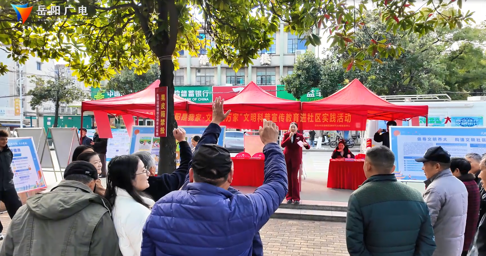 岳阳广电全媒体讯(记者 胡菁)12月16日上午,由岳阳市精神文明建设办公室主办,岳阳市科学技术协会协办,岳阳楼区精神文明建设办公室承办的“岳阳是我家 ·文明融万家”文明科普宣传教育进社区实践活动,在七里山社区顺利举行。活动旨在通过零距离、接地气的宣传方式,向居民普及生活科学知识,倡导文明健康新风尚,共同营造和谐美好的社区环境。