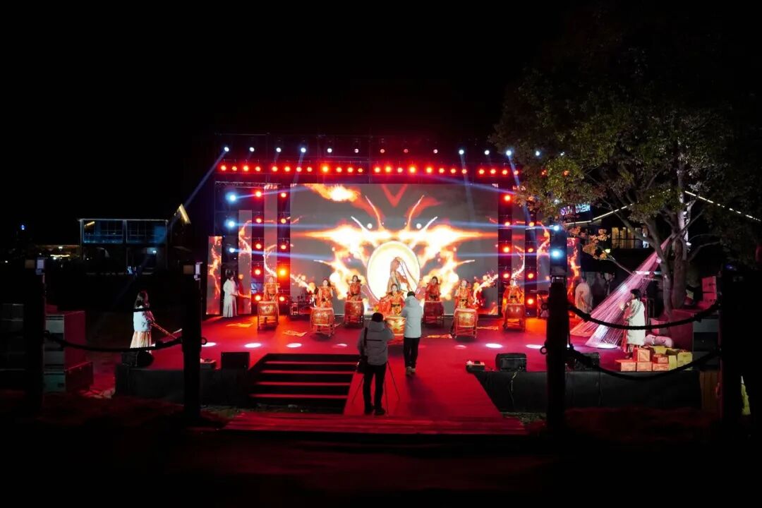 夜幕初垂,后浪公园已年味浓郁。18时许,NPC民俗巡游沿园区动线展开,工作人员身着特色服饰与市民游客互动合影、派送礼品,提前点燃欢乐氛围。19时,三号梯田主舞台上,气势恢宏的大型鼓舞骤然响起,铿锵鼓点奏响新年序曲,启动仪式正式拉开帷幕。