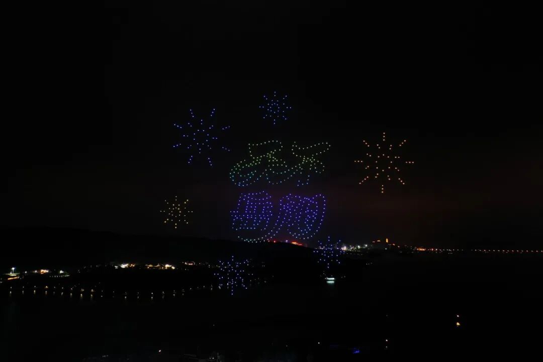 随着活动进入高潮,停车场草坪上的无人机次第升空,成为夜空焦点。随着主持人引导,观众纷纷举目仰望,无人机编队在夜色中精准穿梭、灵动变阵,将科技美感与艺术创意深度融合,勾勒出绚丽光影图案。当岳阳城市地标等元素在夜空浮现时,全场欢呼惊叹声此起彼伏。