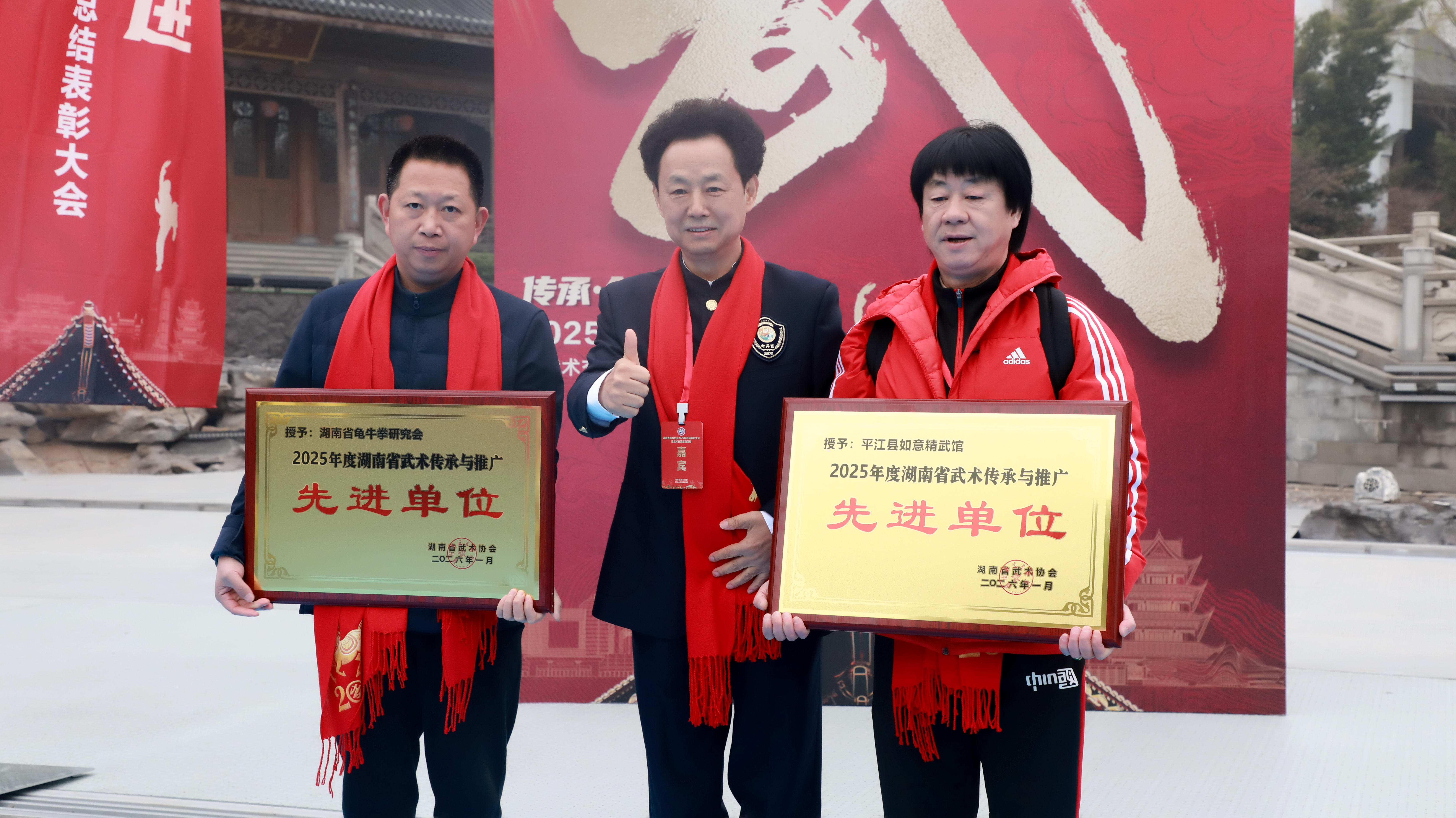 岳阳广电全媒体讯 1月18日,“传承·创新·共进——湖南省武术协会2025年总结表彰大会暨武术交流展演活动”在长沙橘子洲江天暮雪文化园圆满落幕。大会系统回顾了过去一年全省武术工作的丰硕成果,隆重表彰了一批为武术事业做出突出贡献的先进集体与个人,并完成了协会相关章程修订与人事调整,为未来发展凝聚共识、积蓄力量。