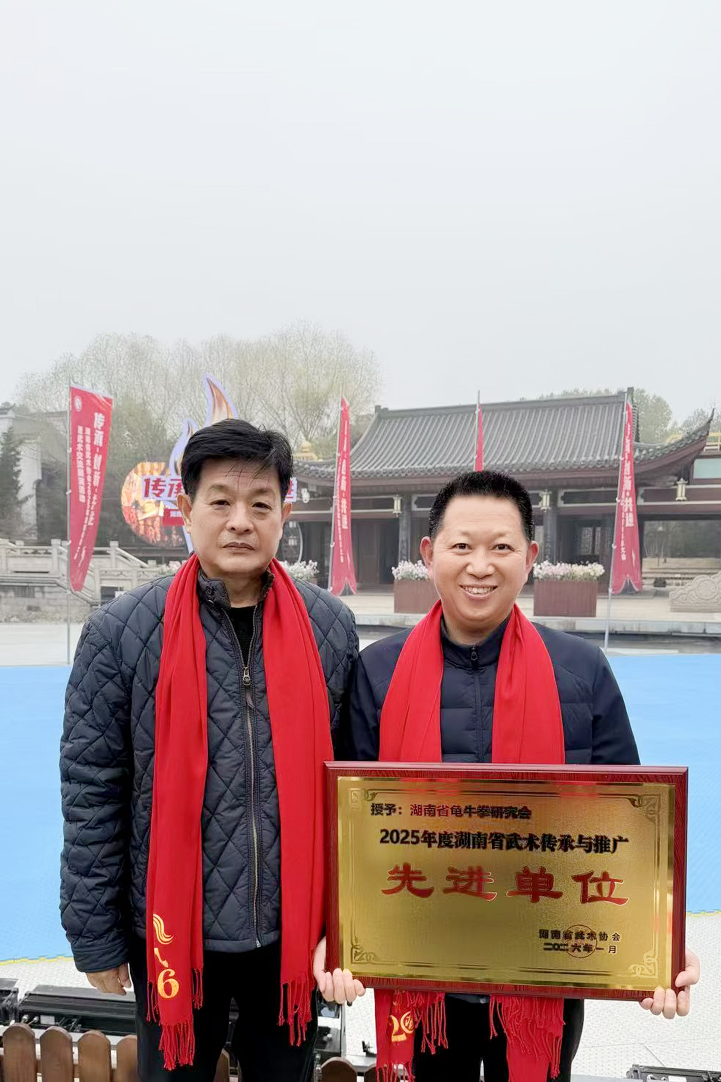 尤其值得一提的是,研究会于2025年1月11日至13日成功主办“中国龟牛拳40周年精英会”,自筹资金36万元,邀请全国传承人及省市级体育界领导、嘉宾等200余人参会,并对优秀传承人进行表彰。湖南省体育职业学院院长罗器宇、省武协主席杜利民、岳阳市政协副主席,市教体局副局长李永波等领导现场为获奖者颁奖,进一步扩大了龟牛拳的品牌影响力。