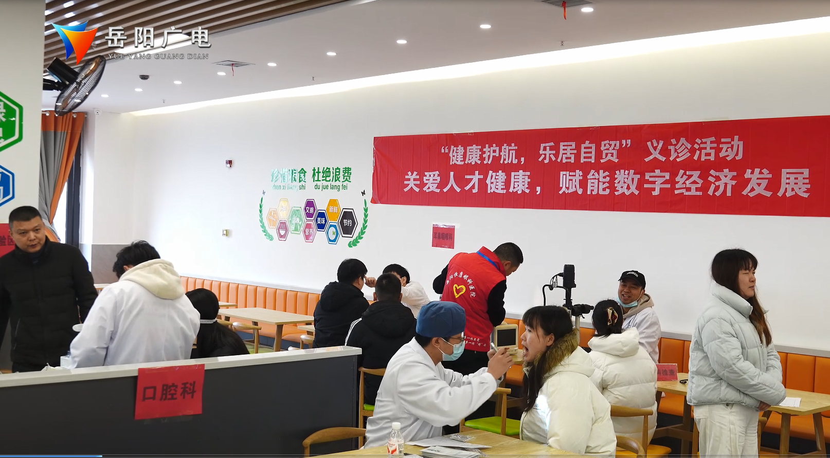岳阳广电全媒体讯(记者 王心玉 通讯员 陈明)1月28日上午,在岳阳自贸片区数字经济产业综合体项目B区(高端人才公寓),平日喧闹的就餐食堂悄然变身为专业的健康驿站,“健康护航,乐居自贸”义诊活动在这里温暖启幕。来自岳阳恒康眼科医院、岳阳长江骨科医院等医疗机构的医护人员早早到场,将血压计、血糖仪、视力表等设备一一就位,等待着为园区企业员工送上新年第一份“健康礼”。