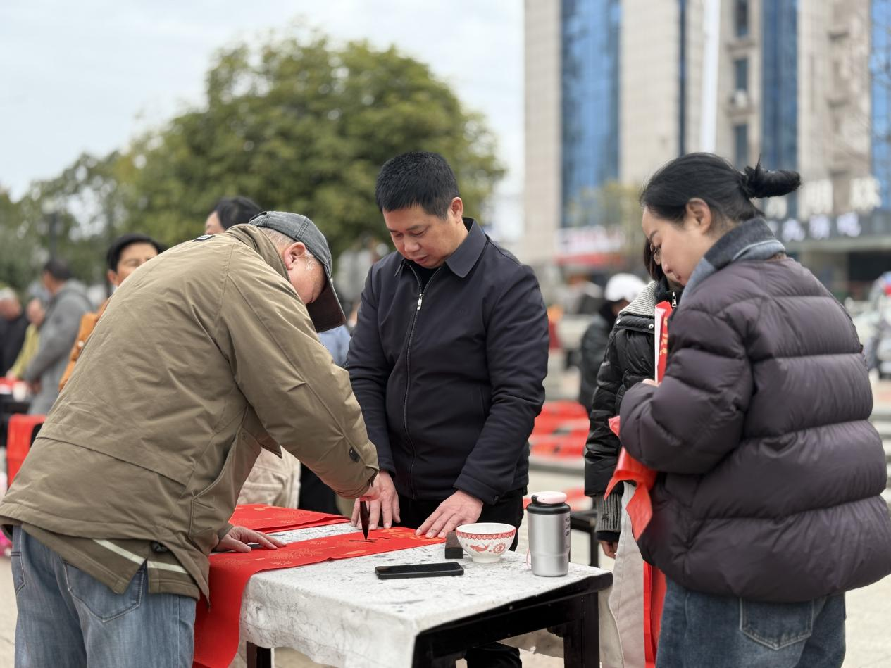 岳阳广电全媒体2月5日讯(通讯员 甘洁)2月3日,平江县千年古镇长寿街金河广场人头攒动,热闹非凡。县老年书画协会在这里举办“墨香迎新春·福联赠万家”送春联下乡活动。县政协原主席李志辉,县政协原副主席、老年书画协会会长毛帅南,县文联主席罗鹏飞,长寿镇镇长唐颖,33位书画家及众多艺术爱好者参加活动。