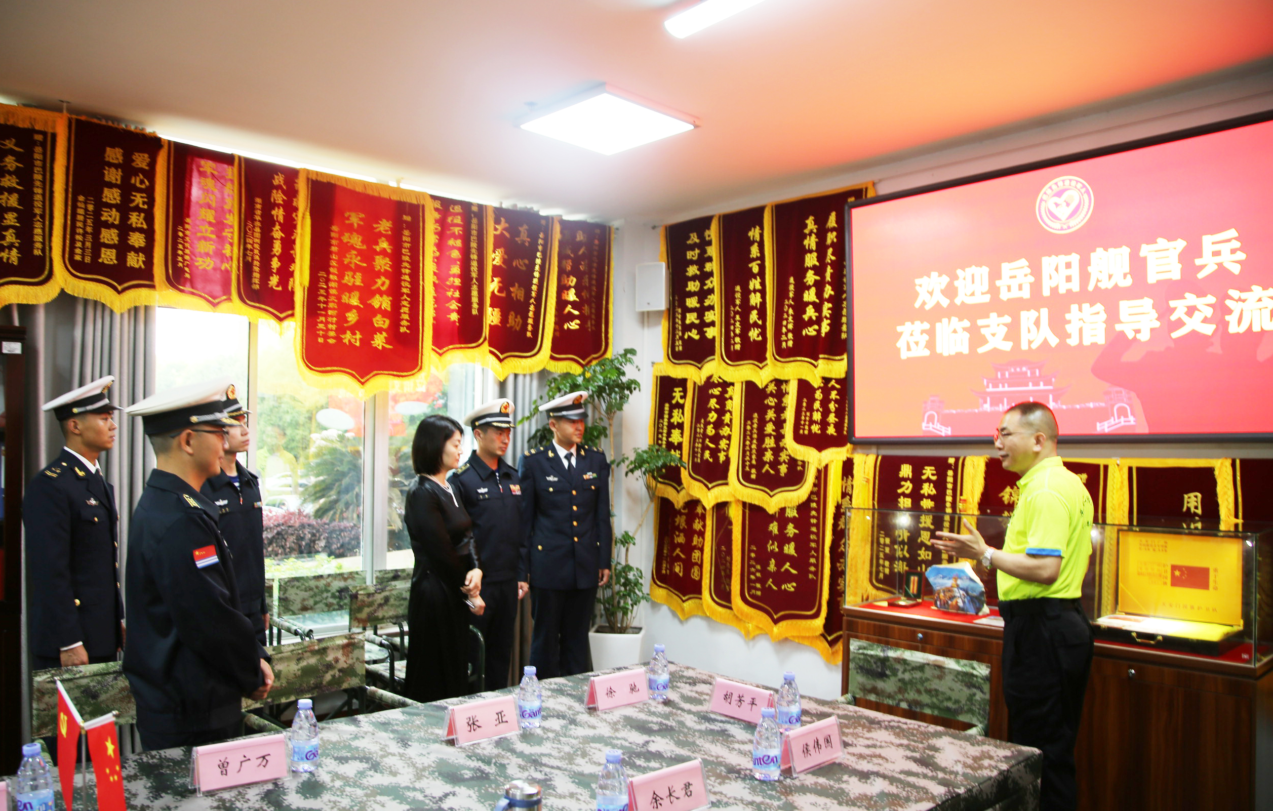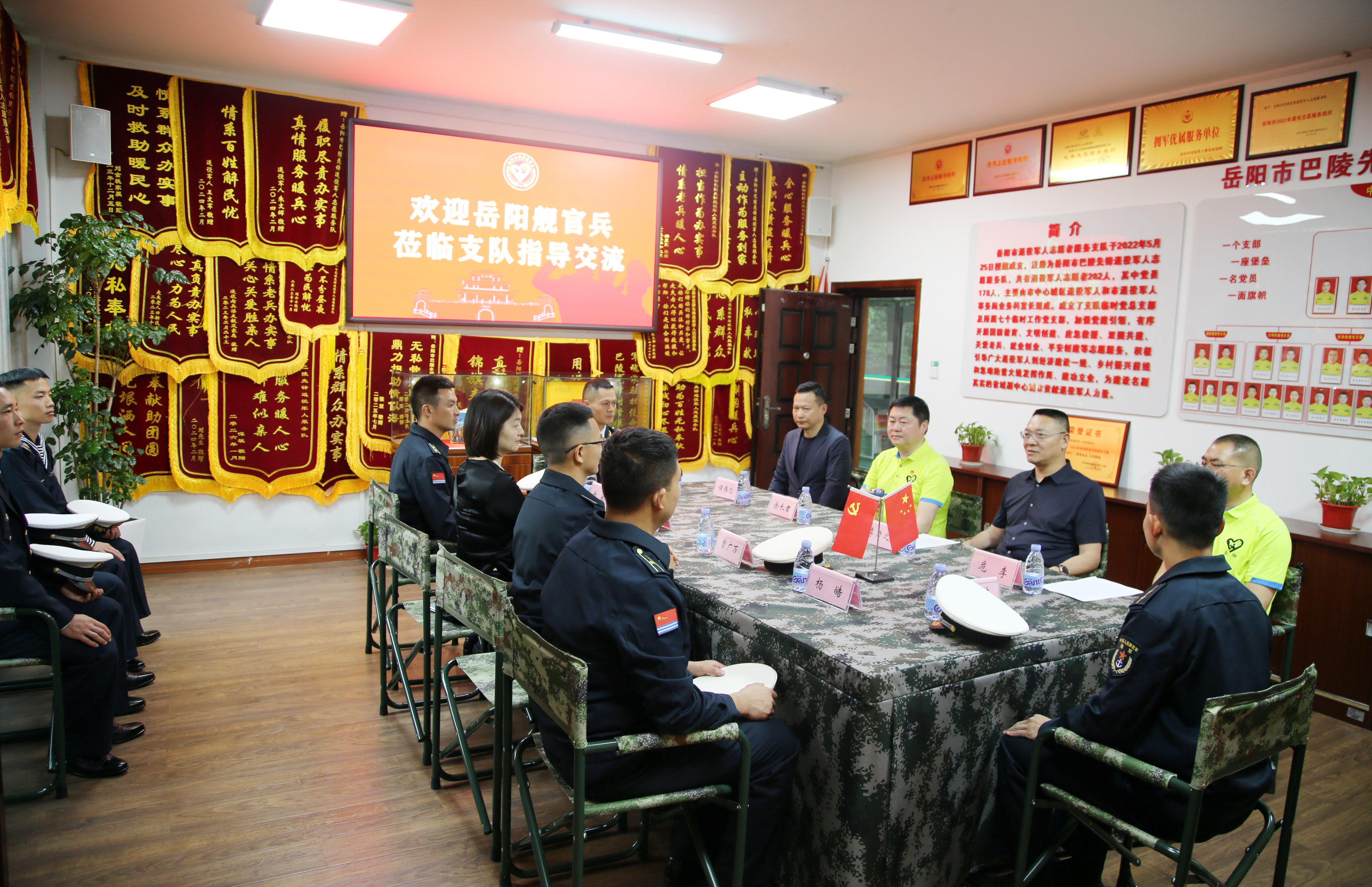 活动现场,岳阳舰官兵集中观看了巴陵先锋退役军人志愿服务队专题宣传片,直观感受队伍建设风貌与志愿服务开展实况。随后,政委危李详细介绍了志愿服务队发展历程、组织架构、队伍建设等基本情况,全面梳理多年来岳阳广大退役军人志愿者扎根基层、主动作为在双拥共建、应急救援、关爱老兵、国防教育等领域作出,的积极贡献,充分展现退役军人退役不褪色、建功新时代的使命担当。